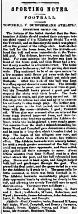 - ^ "Townhill v Dunfermline (Scratch team)". Dunfermline Saturday Press: 3. 6 June 1885.