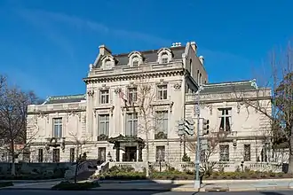 The free-standing house, set in almost an acre of garden, was designed in the Beaux Arts French style by architects Carrère and Hastings in 1898 for Mary Scott Townsend, daughter of and heiress to William Lawrence Scott, and her husband Richard H. Townsend, moving from their previous home at 736 Jackson Place. Construction was essentially completed in 1901.[2] Mr. Townsend died shortly thereafter, in 1902, and his wife lived in the house until her own death in 1931. The house then became the home of their daughter, Mathilde Scott Townsend, and her husband since 1925, prominent diplomat Sumner Welles, until 1939 and again in 1943, even though they spent much time in Oxon Hill Manor and abroad. The Cosmos Club purchased the property in 1950, following Mrs. Welles' death in Switzerland in 1949.
