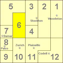 Rooks County was established with four townships: Bow Creek, Lowell, Paradise and Stockton. That number increased to seven by 1878[2] and twenty three in 1925. The twenty three townships were in place until 1971 when the number was reduced to the current twelve townships.[3]
