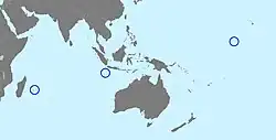 Toxopneustes maculatus has a range probably as large as that of the more common Toxopneustes pileolus, but it is exceedingly rare. It is known only from a few specimens recovered from Réunion, Christmas Island, unspecified areas of the Indian Ocean, and the Palmyra Atoll.[3][4]