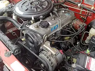 The 1.5 L 1A was produced between 1978 and 1980.[6] All variants were belt-driven 8-valve counter-flow SOHC engines with a single, twin-barrel downdraft carburetor. It used Toyota's Turbulence Generating Pot (TGP) lean combustion system to meet Japanese emissions standards at the time with only an oxidation (2-way) catalyst.[7] The 1A engine was only 550 mm (21.6 in) long.[8]