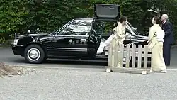 Welcab (paratransit) versions of the taxi models were offered, adding a rear passenger seat that rotates outwards to aid the entry and exit of passengers with limited mobility; these cars can be identified by the International Symbol of Access on the corresponding door.[21] A "swing roof" option was also offered for Crown Comforts and Crown Sedans used in Shinto weddings, adding a hinged roof panel above the rear passenger door that opens upwards to allow for the clearance of a bride's wig and headdress during entry and exit.