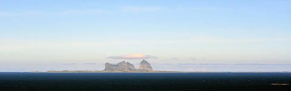 The municipality consists of 477 islands and skerries off the coast of mainland Norway.[36] Four of the islands are populated: Husøya, Selvær, Sanna, and Sandøy. The islands lie along the Trænfjorden to the southeast and the Norwegian Sea to the west. Træna Lighthouse is located in the southern part of the municipality. The highest point in the municipality is the 336.74-metre (1,104.8 ft) tall mountain Trænstaven.[1]