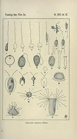 - ^ a b c d e f Alfred C Stokes (1890). "Notices of New Fresh-Water Infusoria". Proceedings of the American Philosophical Society. 28 (132): 74–80. ISSN 0003-049X. JSTOR 983315. Wikidata Q106922786.