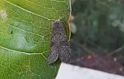 The wingspan of the adult is 20–32 mm. Dorsum dusky brown and ventrum light brown. Proboscis short almost concealed. Apical margin of forewings crenulated with apical angle sub-rounded. Apical margin of hindwings slightly sinuated, with apical angle sub-rounded. Anterior and posterior margin of both wings are convex.[3]