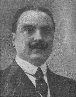 Until the very late 1890s political Traditionalism lacked a complete lecture comparable to works of Balmes and Donoso; authors like Luis Llauder Dalmases[74] produced general overviews of smaller scope[75] or systematically contributed minor theoretical pieces to the press.[76] This changed at the turn of the centuries thanks to two figures who renovated Traditionalist thought: Enrique Gil Robles and Juan Vázquez de Mella.[77] Both offered complete and similar political visions; the former produced it as a single lengthy treaty[78] accompanied by few minor works[79] and the latter as massive and a rather loose collection of press contributions, parliamentary addresses and booklets.[80] Some scholars consider de Mella a follower of Gil,[65] others believe that Traditionalism achieved its most-refined embodiment in the Mellista thought.[81] Gil remained a scholar with impact mostly in academic realm; following death in 1908 his work was soon eclipsed by that of de Mella, who gained high profile as deputy and politician and became sort of a celebrity. Politically Gil remained in-between Integrism and mainstream Carlism. De Mella for some 25 years was considered the key Carlist theorist until in 1919 he broke away.[82] The short-lived party he founded was named Partido Católico-Tradicionalista;[83] in popular discourse it was referred to as Mellistas or Tradicionalistas, while the Carlists of the era – still sharing the same Traditionalist outlook – were usually named Jaimistas.