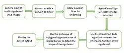 Deep learning can be incorporated into traffic-sign detection. Polygonal approximation of digital curves using Ramer–Douglas–Peucker algorithm can be used to detect the shape of the sign boards and methods like Support Vector Machines and Byte-MCT with an AdaBoost classifier has been used in one of the methods to detect traffic signs.[10]
