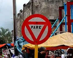 Road signs in Mauritius are regulated by the Traffic Signs Regulations 1990. They are largely derived from the British road sign system since Mauritius is a former British colony.