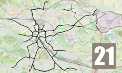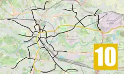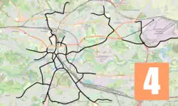 The Kraków tram system is a tram system in Kraków, Poland. The tramway has been in operation since 1882, and is currently operated by Miejskie Przedsiębiorstwo Komunikacyjne w Krakowie (MPK Kraków). There are 22 ordinary, 2 fast, and 3 night tram lines with a total line length of 347 kilometres (216 mi). As of 2013, the total route length of the tramway was 90 kilometres (56 mi), including a 1.4-kilometre (0.87 mi) tram tunnel with two underground stops.[1]
