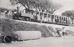 At the station in front of the Casino Municipal on the Place des Acacias, there was a water tower where the steam locomotives could collect water and one and a siding for the SGTR's only covered goods wagon, in which coke was transported from the gas works to the Place des Acacias to heat the locomotives. The locomotives required around 10 kg of coke and 50 litres of water per kilometre.[27][1][28]
