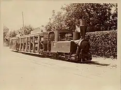 ^The first batch of Campagne railcars had 24 seats, while the second batch only had 20 seats, albeit with upholstered seats. The sidecars were classic Decauville steam tramcars (Baladeuse, type "KE") with 56 seats (including 48 seats), in their original condition with minor adaptations. There were also short sidecars that the SGTR workshops had built themselves on the chassis of an old closed Decavuville carriage (type "IS"). The railcar pulling the inaugural train of the 600 mm forest railway had been re-gauged from metre gauge to 600 mm gauge in order to operate the re-gauged forest railway lines as an extension of the steam tramways.