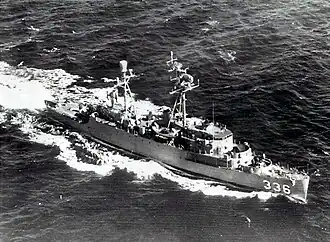 ![]() USS Roy O. Hale pictured underway on February 26, 1959, while engaged in a Submarine Cables Convention police action | |||||||