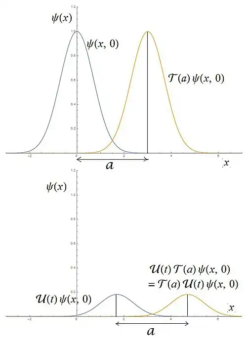 In the passive transformation picture, translational invariance requires, It follows that where is the unitary time evolution operator.[8] When the Hamiltonian is time independent, If the Hamiltonian is time dependent, the above commutation relation is satisfied if or commutes with for all t.