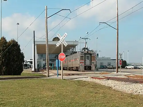 The South Shore Line connects the South Bend International Airport to Millennium Station in Chicago, Illinois. Electric commuter trains pass through towns such as Michigan City, Indiana and Gary, Indiana This journey takes approximately 1 hour 55 minutes.[12] There is a proposal to extend the tracks southwest to a new terminus in downtown South Bend or even Elkhart, Indiana.[13]