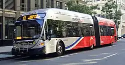 Metrobus is a bus service operated by Metro, consisting of 176 bus lines serving 12,301 stops, including 3,133 bus shelters and nearly every Washington Metro station. In fiscal year 2006, Metrobus provided 131 million trips, 39% of all Washington Metro trips.[14] It serves D.C. and the inner ring of suburban counties. Like the Washington Metrorail, the Metrobus is operated by WMATA and riders can pay with a SmarTrip Card. Overall, there are 269 bus routes serving 11,129 stops and 2,554 bus shelters across the city and inner suburbs.[15]