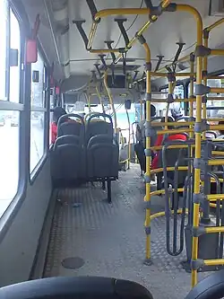 The buses that made up the initial Transurbano fleet were made in Brazil by Busscar, Marcopolo, and CAIO. All buses featured informational LCD screens that displayed weather information and advertisements, security cameras, and GPS tracking. Since the completion of phase 4, SIGA has worked with private bus operators to convert and refurbish buses for Transurbano operation. Guatemala is a notable importer of decommissioned buses from the US. Historically, these have been decommissioned school buses that are transformed into chicken buses for rural passenger service.[9] However, private sector importers have begun importing decommissioned low-floor city buses from the US, which are then leased to SIGA for Transurbano operations. The addition of decommissioned low-floor buses and low-floor articulated buses has also resulted in greater accessibility for users in wheelchairs or with mobility issues, and addressed overcrowding.