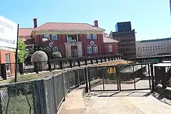 The original main building is red face-brick with a terraced garden facing north at an angle to Joubert Street. Two roundels, in the style of the 1400s Italian sculptor Luca della Robbia are found on the main facade of the building.[2] The main building consisted of a memorial hall on the ground floor with six wards of 112 beds, two operating theatres and radiology and physiotherapy departments with a nurses' home on the grounds.[2] In the centre of the main building, there is a memorial hall with bronze plaques lit by skylights that commemorate those who have endowed money for cots and two altars with scrolls dedicating the names of some of the men of the Transvaal who lost their lives during the First World War.[2]