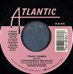 "Trashy Women" is a song written by Chris Wall and recorded by American country music singer Jerry Jeff Walker in 1989 and later by the band Confederate Railroad. It reached number 63 on the US Country chart in 1989 for Walker,[2] and was a number 10 country hit four years later from Confederate Railroad's self-titled debut album.