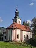 The Parish Church of St Martin was originally a Romanesque church, of which part of the nave survives. The sanctuary is Gothic and in the 18th century a Baroque belfry and chapel were added. In the 19th century the nave was extended.[18] A second church of the Parish of Trbovlje–St. Martin in the western end of town is dedicated to Saint Nicholas and was built in the 18th century.[19]