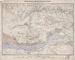 Treasure Hill is an east-jutting spur of the White Pine Range of White Pine County in the east central region of the U.S. state of Nevada.[1][2] It lies to the east of Mount Hamilton and to the northwest of Mokomoke Hill. It is noted for a silver mining boom in the late 1860s: between 1867 and 1880, the total production from area mines was valued at $20 million (equivalent to $542 million in 2023).[3][4] The rush drew thousands to new towns such as Hamilton, situated at the northern base of the hill, and Treasure City, located near its peak, 2.5 miles (4.0 km) from Hamilton.[5]