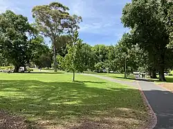 The Treasury Gardens consist of 5.8 hectares (14 acres) on the south-eastern side of the Melbourne central business district, East Melbourne, Victoria, Australia. The gardens are bounded by Wellington Parade, Spring Street, Treasury Place, and by the Fitzroy Gardens across Lansdowne street to the west. They form part of a network of city gardens including Fitzroy Gardens, Carlton Gardens, Flagstaff Gardens and Kings Domain. The gardens are listed on the Australian National Heritage List and the Victorian Heritage Register for their historical, archaeological, social, "aesthetic and scientific (horticultural) importance for its outstanding nineteenth century design, path layout and planting".[2]