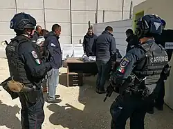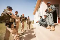 In December 2009, EUROGENDFOR participated in NATO International Security Assistance Force (ISAF) training operation of the Afghan National Police (ANP) in the War in Afghanistan. As of June 2010, 276 members of the European Gendarmerie Force (including 124 French gendarmes) from France, Spain,the Netherlands, Poland, Romania and Portugal trained the Afghan National Civil Order Police (ANCOP) officers and non-commissioned officers. The initial mission was planned to involve around 400-500 personnel.[8] They were trained at ANCOP training facilities, accompanying, advising and supporting them during their missions in P-OMLT (Police Operational Mentoring and Liaison Teams),[9][10] where their military experience would be useful even if the mission was strictly civilian. As of May 2010, 50 officers and 250 non-commissioned officers of ANCOP were trained. The French Minister of Defense Brice Hortefeux announced that an additional 40 French gendarmes would be sent to support the mission.[11]