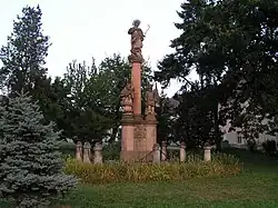The Immaculata is a work of art of an unknown sculptor. It was erected around 1800. There are three statues: The main is Madonna trampling a snake; on her right there is a statue of St. John of Nepomuk; on her left a statue of the patron and protector from fire, St. Florian. At present, it is placed in its third place. Originally it was placed in front of the manor house. Later, in 1907, it was placed south of the church, on the edge of the city park. In the 1980s, it was restored and placed between the Roman- and Greek-Catholic churches.