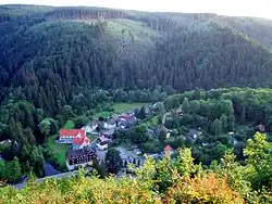 The village owes its emergence to the mining of iron and copper in the 15th to 19th centuries. Until 1784 log rafts were also assembled here before being transported down the gorge to the Thale smelting works (Thaler Hütte).'