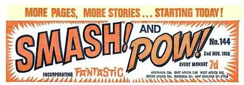 Smash! featured the Power Comics logo on its cover for 100 issues, until #143 (26 October 1968); it was quietly dropped the week Smash! absorbed Fantastic to become the last surviving title in the line.