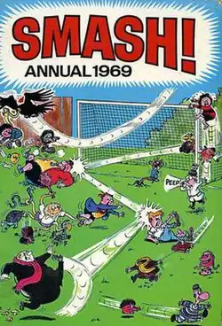 - ^ The Smash! annuals were published initially by Odhams Books Ltd (1967-68), subsequently by the Hamlyn Publishing Group Ltd (1969-70), and latterly by IPC Magazines Ltd (1971-76).