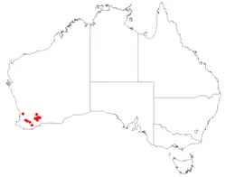 It is found in the IBRA regions: Avon Wheatbelt, Esperance Plains, Jarrah Forest and Mallee.[1]