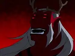 • Trigon appears in the DCAMU film Justice League Dark: Apokolips War, voiced by John DiMaggio.[18][23][24][25] Despite his imprisonment, he helps Raven survive Darkseid's invasion of Earth, gradually weakening her in the process. After Robin is killed trying to save Batman, Raven inadvertently frees Trigon, who possesses Superman, kills John Constantine, and battles Darkseid until Superman breaks free upon witnessing Lois Lane's death. Raven and a revived Constantine combine their powers to restore Trigon's body before Cyborg sacrifices himself to transport Trigon and Darkseid into oblivion.