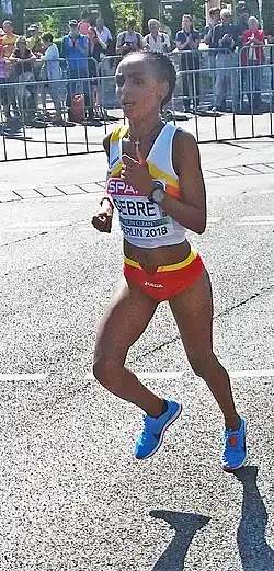 Trihas Gebre Aunoon (born 29 April 1990) is a long-distance runner. Born in Ethiopia, she competes for Spain internationally.[3] She competed in the 10,000 metres at the 2015 World Championships in Beijing finishing 16th.