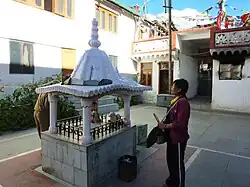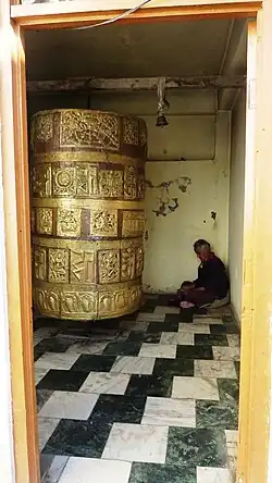 The original temple columns date from the time of King Lalitaditya in the 9th century CE. At the courtyard are large Buddhist prayer wheels and a granite lingam and small Nandi (bull) representing Shiva, while the ancient wooden pagoda-style temple is decorated with Tibetan prayer flags. Both Hindus and Buddhists celebrate the three-day Pauri Festival here in August.[10]