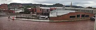 On August 7, 1902, the Bowen Town coal mine, six miles north of Trinidad, experienced a horrific gas explosion, killing 13 miners.[19] It was one of the worst mining disasters so far in the state; conditions in the mine provided the impetus for several labor strikes. At one point in late 1903, an estimated 3,000 miners, members of the United Mine Workers of America, went on strike.[20] In 1904 Trinidad experienced several disasters. In mid-January a fire destroyed two blocks of the town's business section, causing more than $75,000 in damages.[21] In late September, the Trinidad area and the region along the Purgatoire River endured an unusually heavy rainstorm, leading to severe flooding; the flood destroyed the Santa Fe railroad station, wiped out every bridge in town, and caused several hundred thousand dollars' worth of property damage.[22] As Trinidad continued to grow, a number of new construction projects began in the downtown area, including a new library, a new city hall, an opera house, and a new hotel.[23]
