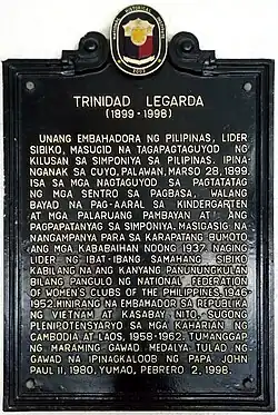![]() Historical marker of Trinidad Legarda in Ermita, Manila | |