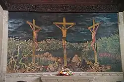 - "The Crucifixion" located above the altar: In this mural, painted in 1933, Paynter has set the crucifixion, with a beardless Christ on a cross, in a mangrove swamp,[18] such as is to be found on the east coast of Sri Lanka.