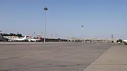 During the 2014 Libyan Civil War, the airport was heavily damaged in the Battle of Tripoli Airport.[4] The airport reopened for limited commercial use in July 2017.[5] In April 2019, however, it was reported that Mitiga had become the last functioning airport in Tripoli during the 2019–20 Western Libya campaign.[6][7] It was soon acknowledged that the ruling Government of National Accord (GNA) had bombed the airport in an attempt to recapture it from the Libyan National Army (LNA).[8] Mitiga was soon shut down as well after being bombed by the LNA,[7][6] thus making Misrata Airport, located approximately 200 km (125 miles) to the east down the coast, the nearest functional airport for Tripoli residents.[8]