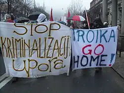 The term Troika has been widely used in Greece, Cyprus (Greek: τρόικα),[1][2] Ireland,[3] Portugal,[4] and Spain[5] to refer to the consortium of the European Commission, the European Central Bank and the International Monetary Fund that provided a bailout to these states since 2010, and the financial measures and government policies that the three institutions have demanded to be implemented in return by Greece and the other nations concerned. Slovenia barely avoided intervention by the Troika in 2013, thanks to the loan of EUR 1.5 billion from PIMCO.[6] These institutions had wide influence and increased their power over time. They implemented a strong austerity program for the adjustment of Greek fiscal measures. The political impact of the austerity imposed on countries of the EU periphery, which were confronted with significant debt, led to "a predominant economic and social dislocation".[7]