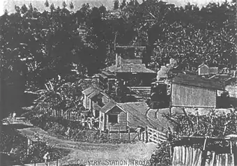 Troja railway station opened in 1896,[1] closed in 1975,[2] reopened in 1977 and closed for good in 1978. It was on the Bog Walk to Port Antonio branch line, 31 miles (50 km) from the Kingston terminus (in Jamaica),[4] and served the surrounding agricultural community, providing a means for bananas to reach and be exported from Port Antonio.[1] It was vandalised some time after closure.[3]