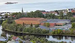 Trondheim Spektrum (formerly Nidarøhallen) is a multi-purpose indoor arena in Trondheim, Norway. It is located on the peninsula of Øya next to the Nidelven river. It is the home arena for men's basketball team Nidaros Jets and the alternate arena for Kolstad Håndball when playing EHF Champions League matches. A new arena was completed in 2019 and replaced the largest multi-use hall in the same location. The eight former halls originally went by the name Nidarøhallen.