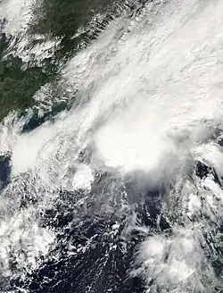 ![]() Tropical Storm Maysak shortly after peak intensity on November 9 | |