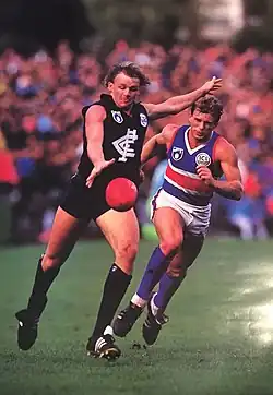 He made his senior debut in 1987 at the age of 20 after coming up through the ranks of the Under 19's and Reserves. Plagued by injury, Moloney would go on to play 36 senior games and kick 4 goals over six seasons at Footscray.