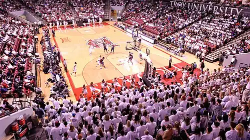 In the inaugural game at the newly built Trojan Arena during the 2012 season, Troy had a record crowd of 5,120 as they hosted Mississippi State, who were coming off of a 20-win season and an NIT appearance. Troy would upset the Bulldogs, 56–53.