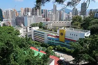 Since it was built according to the standards of 30 years ago, much effort has been made to improve the basic facilities of the school premises to meet the needs of the a changing society. A new annex was completed in Autumn 2005,[2] providing four more classrooms and some special rooms in addition to the 20 classroom in the main building. There are a total of 24 classrooms, 16 special rooms, a hall, a covered playground, a canteen, a library, a student activity room, a gymnastics room, a badminton court and two basketball courts. Student TV and a School History Gallery were established in 2013 to celebrate the school's 40th Anniversary. Later on, an E-learning Centre was built in 2014 to facilitate students' learning with the convenient use of gadgets and easy access to the Wi-Fi network.[3]