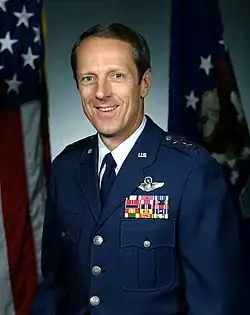 The general is a command pilot with 3,500 flying hours. His military decorations and awards include the Distinguished Service Medal, Legion of Merit with oak leaf cluster, Distinguished Flying Cross, Bronze Star Medal, Meritorious Service Medal and Air Medal with six oak leaf clusters.