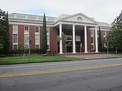 The Truman Wesley Collins Legal Center houses the Willamette University College of Law at Willamette University in Salem, Oregon, United States. Located on Winter Street, just south of the Oregon State Capitol,[1] the facility features classrooms, the law library, administrative offices, and faculty offices.[2] The building also contains a fully functioning trial courtroom used for moot court.[2] It houses Lady Justice, the 12-foot (3.7 m)-tall, 300-pound (140 kg) statue formerly located on the roof of the Marion County Courthouse.[3][4]