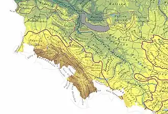 ![]() Geomorphical divisions of southwestern Poland, Trzebnickie Hills hatched | |