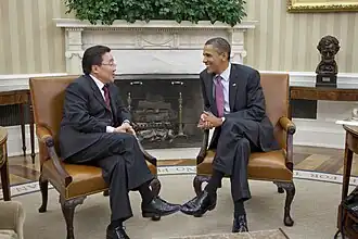 U.S. President Barack Obama issued a statement on the presidential election in Mongolia on 27 June 2013, the same day the election result was announced.[108] President Obama stated: "President Elbegdorj has been an important leader in advancing democracy and freedom in his country and a key partner for the United States in Asia and globally ... Through its impressive democratic achievements and its progress on economic liberalization, Mongolia serves as a significant example of positive reform and transformation for peoples around the world."[109]