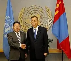 240. ^ B., Khuder (3 July 2013). "Ban Ki-moon congratulates re-elected President". Montsame News Agency. Retrieved 3 July 2013.